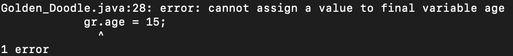 System.out.println("Dog's Name: " + name + "\n" + "Mom's name: "+ my_mom_name + "\n" + "Mom's Species: " + my_mom_species);